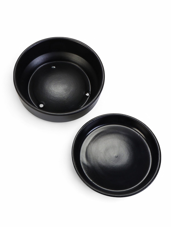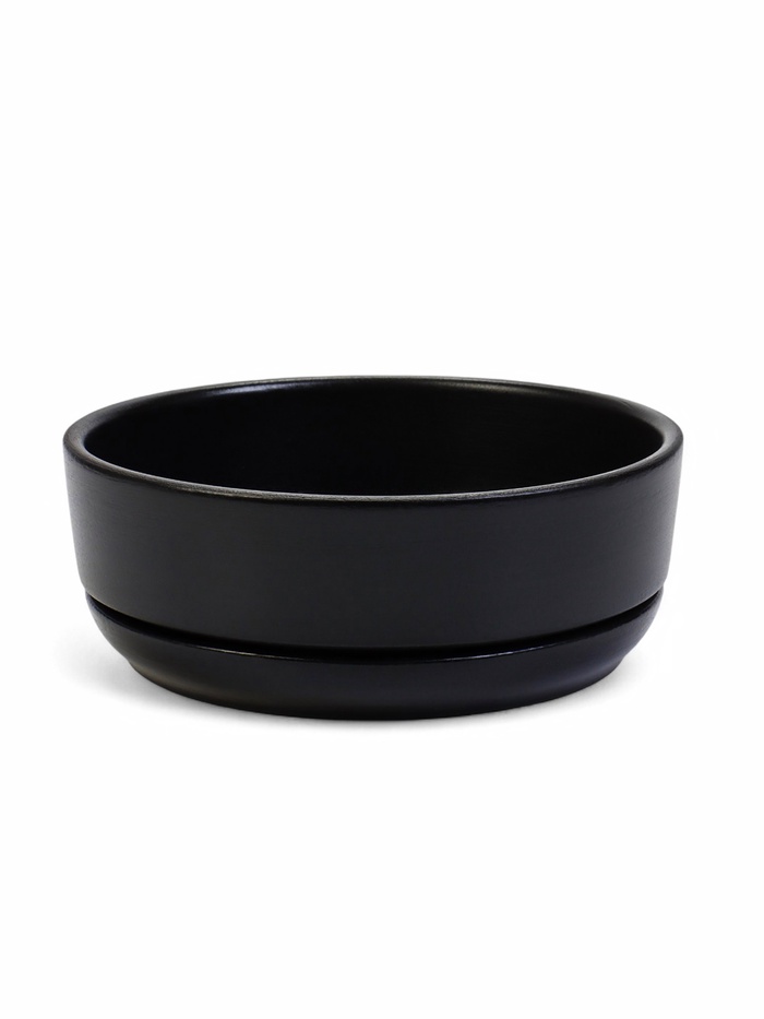 Горшок - бонсайница «Огма» для кактусов и суккулентов, 1.4 л, d=18 см, h=6.5 см, керамика, с поддоном, чёрный
