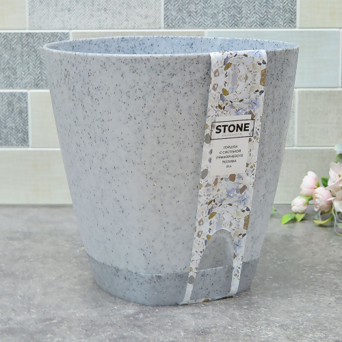 Горшок цветочный Amsterdam 8л D250мм с прикорневым поливом, светлый камень