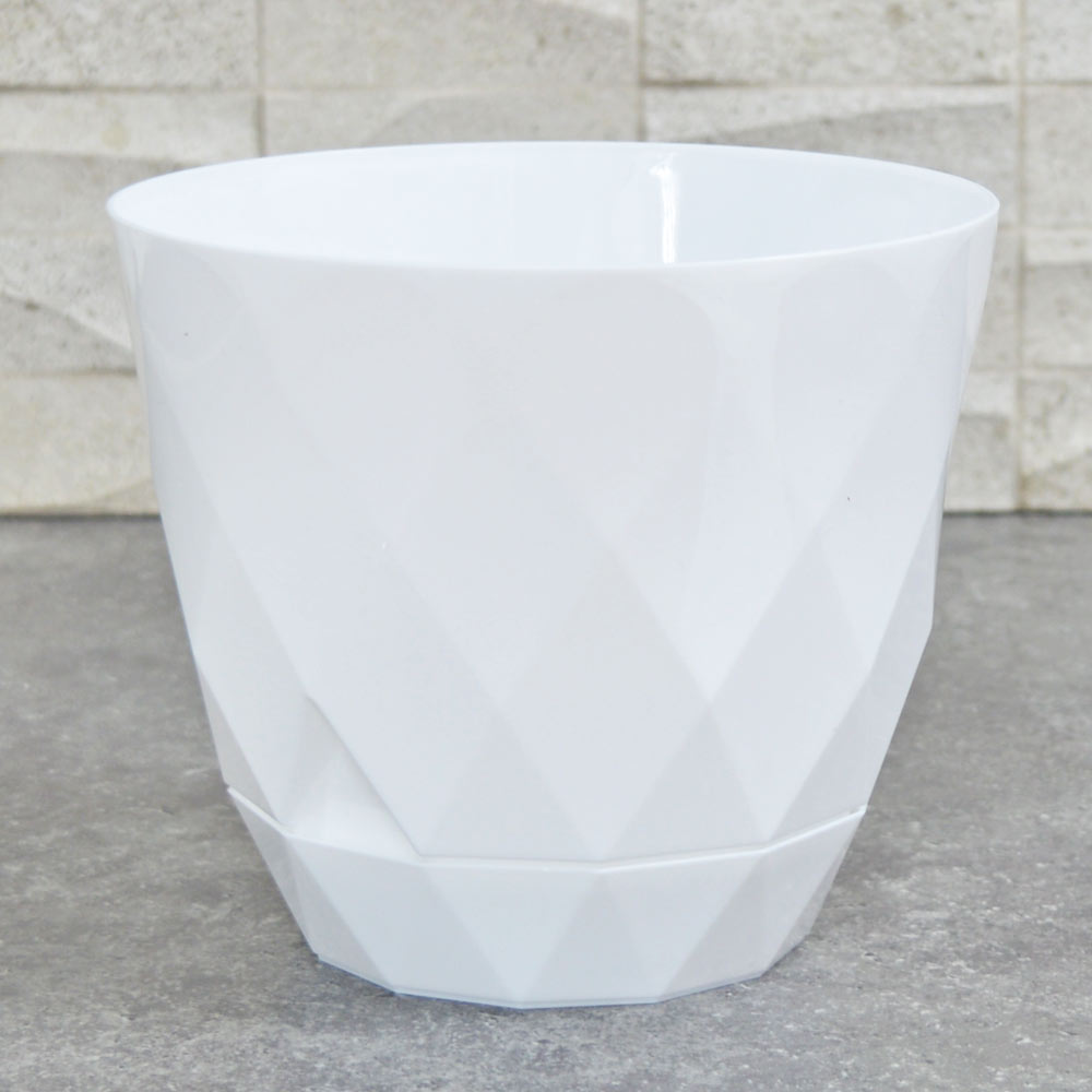 Стильная и минималистичная рельефная фактура, напоминающая огранку драгоценного камня, и спокойный базовый цвет помогут гармонично вписать горшок в домашний интерьер.