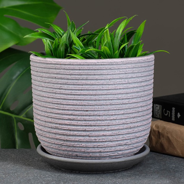 Горшок цветочный «Лоза», керамический, с поддоном, 1.73 л, розовый, серый