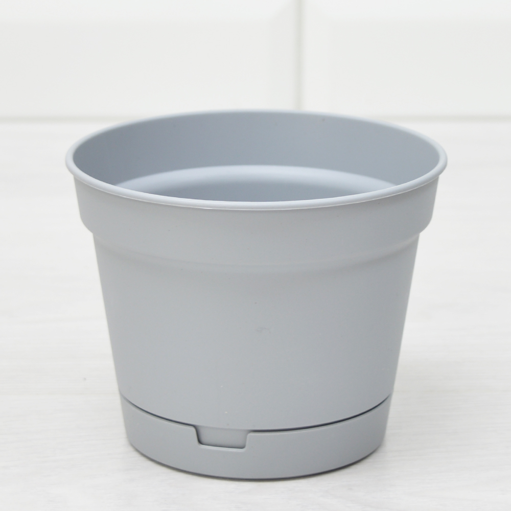 Горшок цветочный Mint 0,7л d120мм, серый состоит из корпуса и интегрированного поддона, не выступающего за дно горшка.