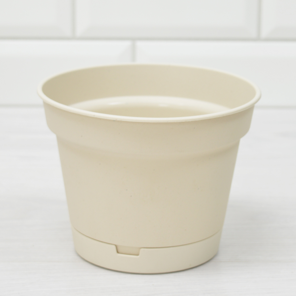 Горшок цветочный Mint 1,2л d150мм, светло-бежевый состоит из корпуса и интегрированного поддона, не выступающего за дно горшка.