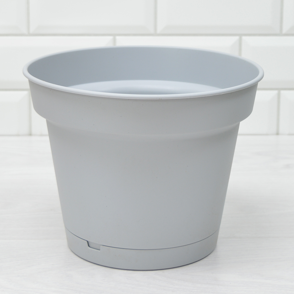 Горшок цветочный Mint 5л d240мм, серый состоит из корпуса и интегрированного поддона, не выступающего за дно горшка.