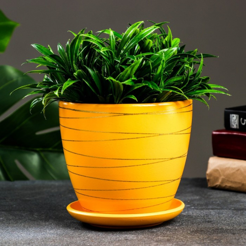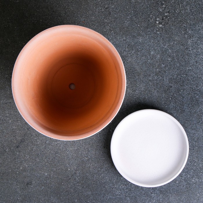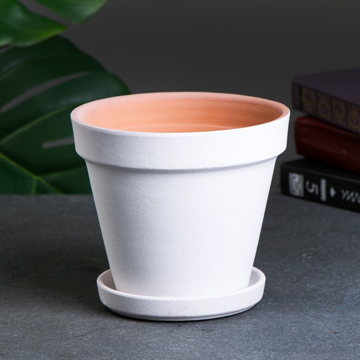 Горшок цветочный с поддоном 1,2 л, белый керамика, (М)