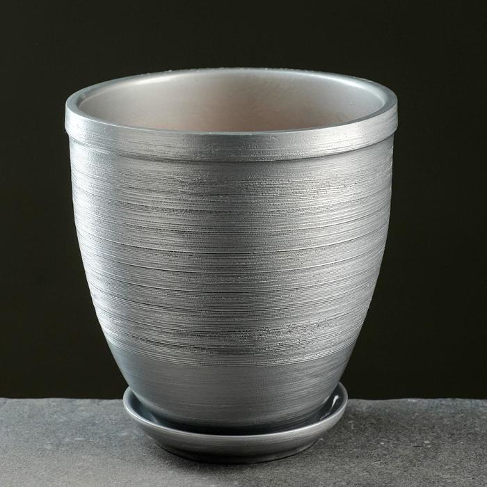 Горшок цветочный с поддоном 2.4 л, серый керамика, «Серебро» (М)