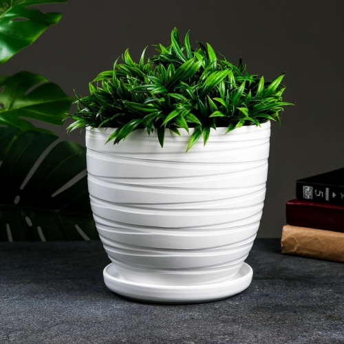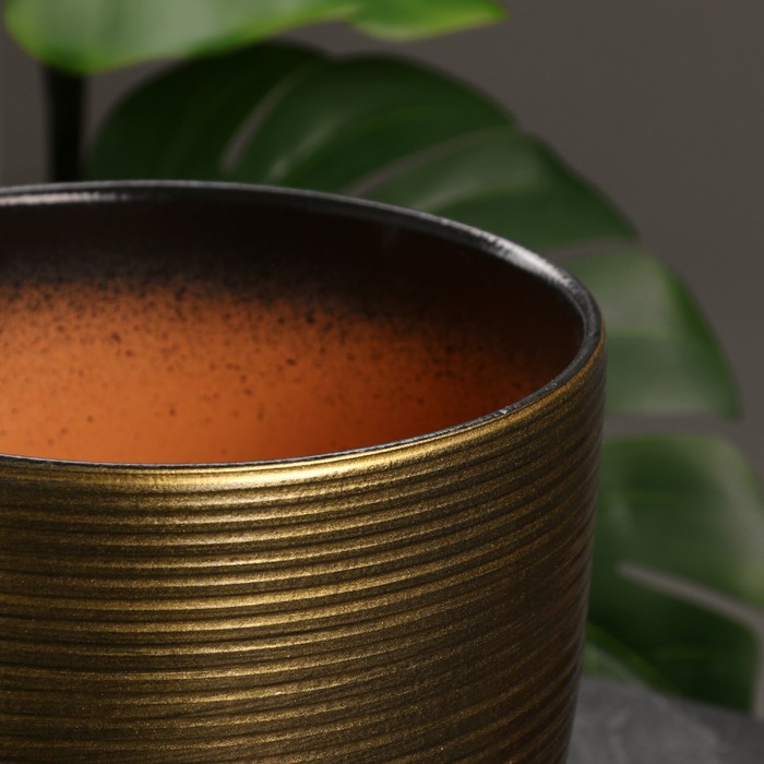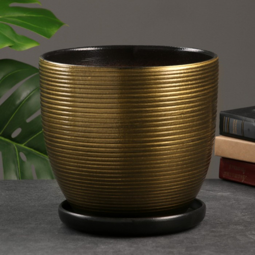 Горшок цветочный с поддоном 4,7 л, коричневый, керамика, "Изысканность" (М)
