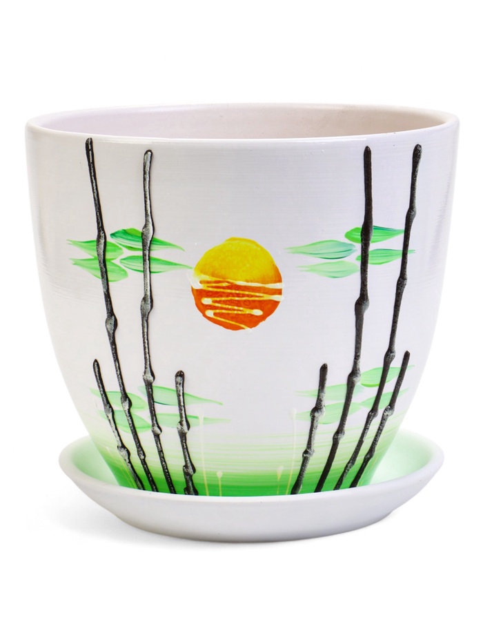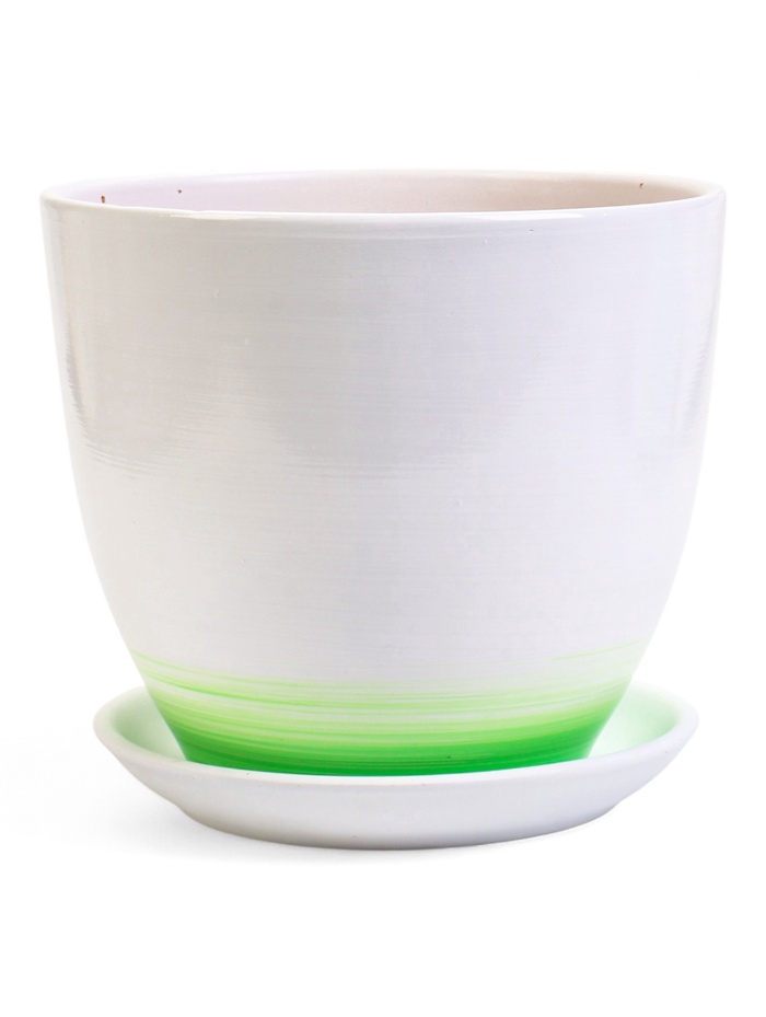Керамический горшок «Азия» объёмом 5 литров - практичное решение для крупных комнатных растений. С диаметром 22 см и высотой 19,5 см он идеально подходит для монстер, диффенбахий или крупных фикусов. Белоснежная глазурь придаёт стильный вид, а входящий в комплект поддон защищает поверхности от излишков воды. Качественная керамика обеспечивает устойчивость и долговечность.