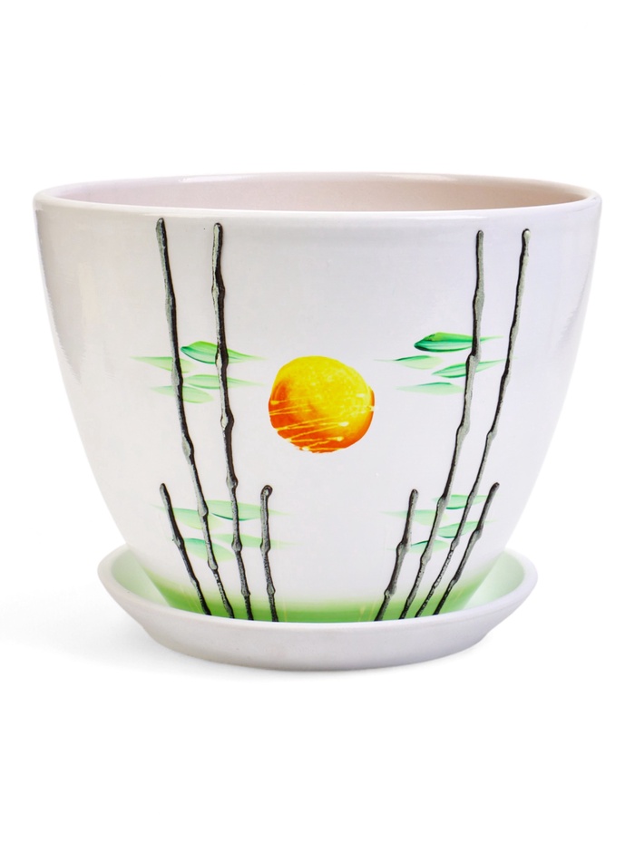 Горшок для цветов «Азия », 8 л, d=29.5 см, h=23 см, с поддоном, керамика, белый