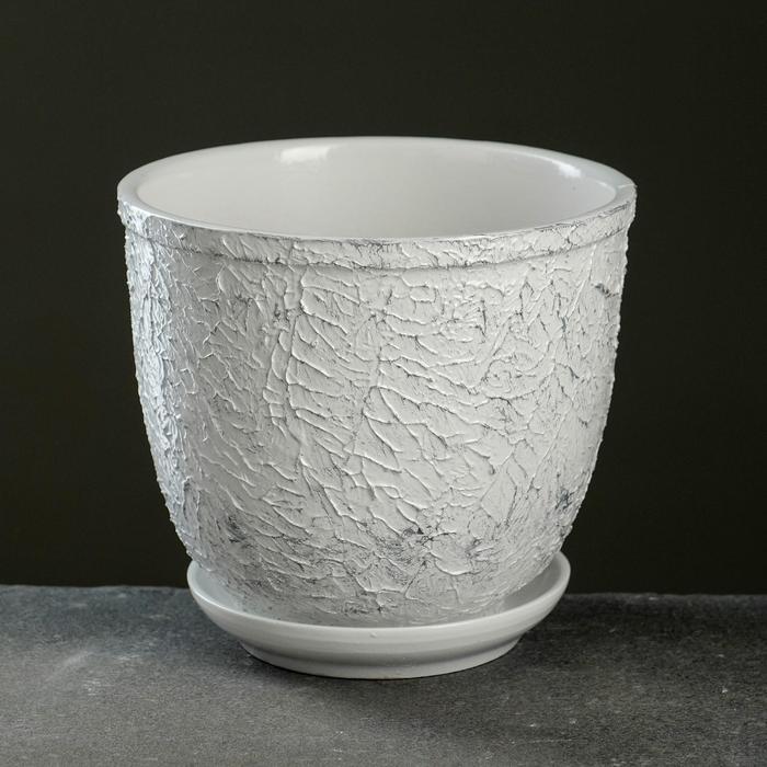 Горшок для цветов «Белое серебро», 1.8 л, d=15.6 см, h=14.4 см, керамика, с поддоном, белый