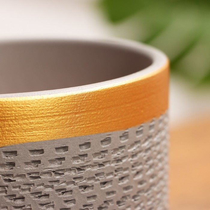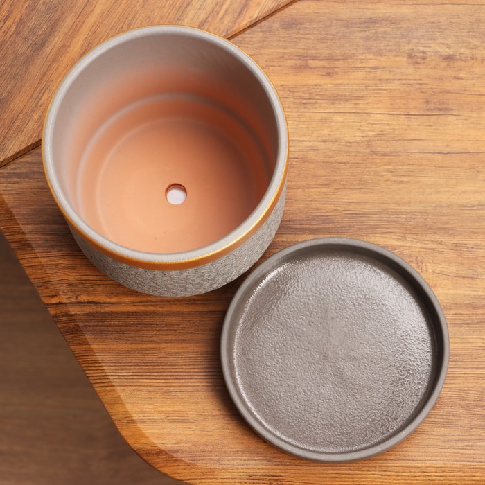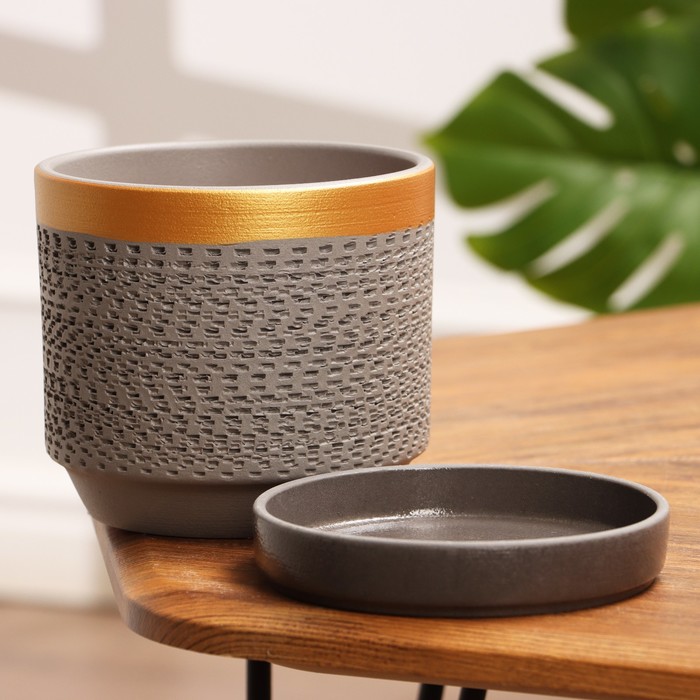Горшок для цветов «Брюссель», 1.5 л, d=14 см, h=13.5 см, керамический, с поддоном, серый