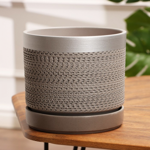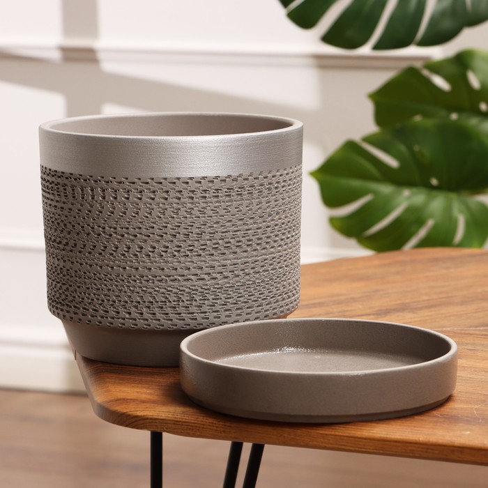 Горшок для цветов «Брюссель», 4.2 л, d=20.2 см, h=18.5 см, керамический, с поддоном, серый