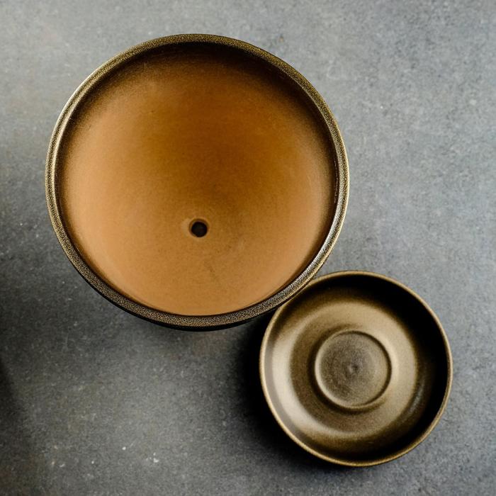 Горшок для цветов «Чёрное золото», керамический, с поддоном, 1.8 л