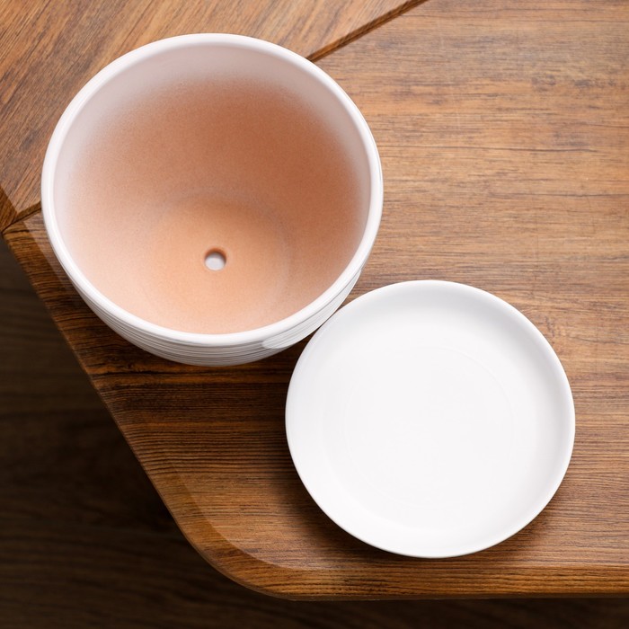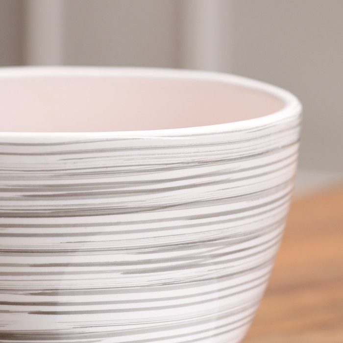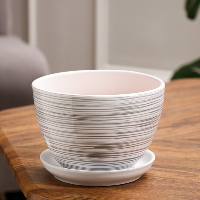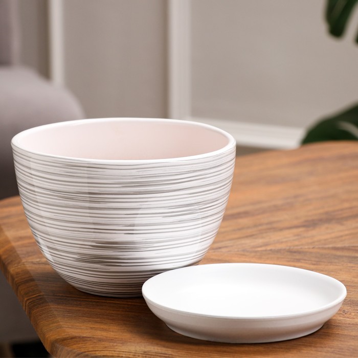 Горшок для цветов «День», керамический, с поддоном, 1.65 л, белый с полосками