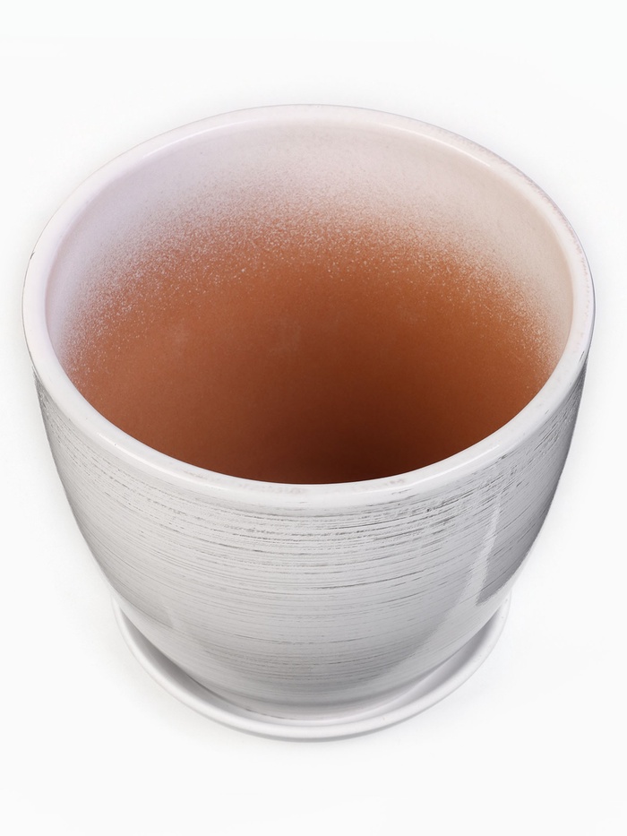 Горшок для цветов «День», керамический, с поддоном, 2.5 л, белый с полосками