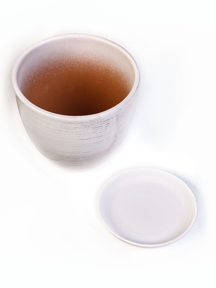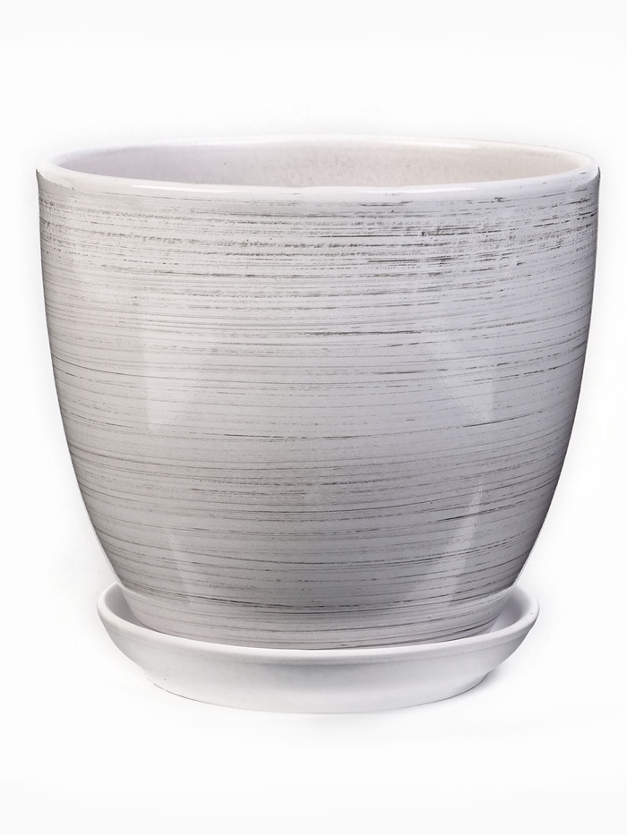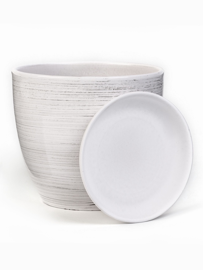 Керамический цветочный горшок с поддоном – идеальный выбор для вашего дома или офиса. Белый цвет с полосками добавит современный акцент и элегантность любому пространству, позволяя растениям быть центром внимания.