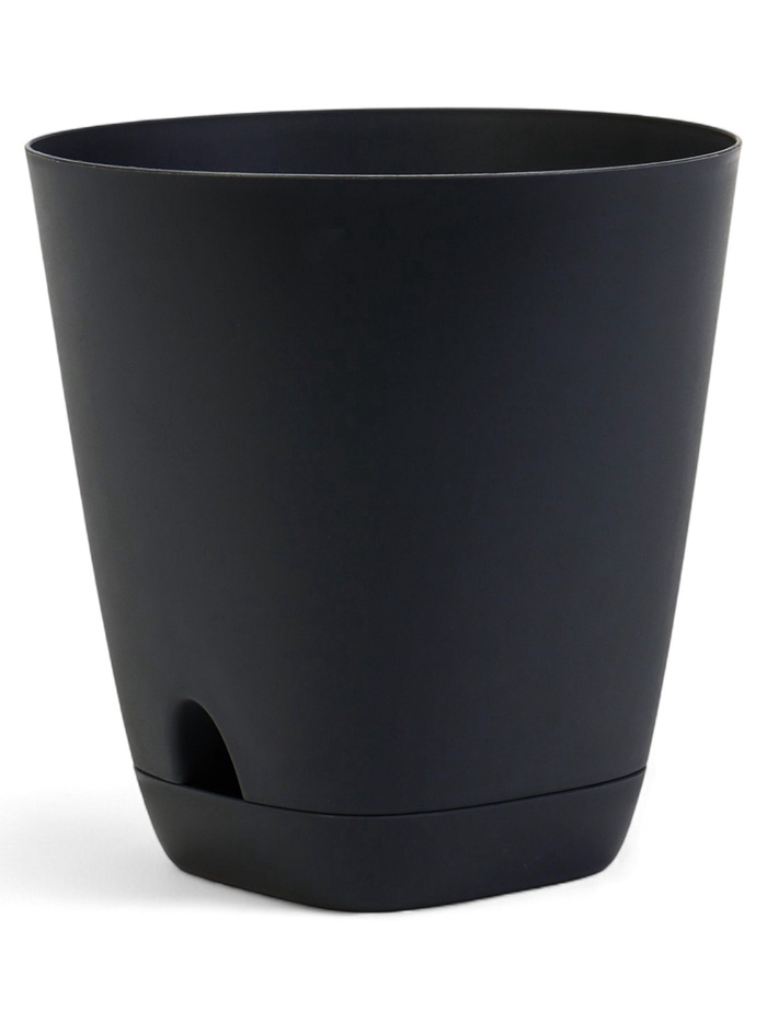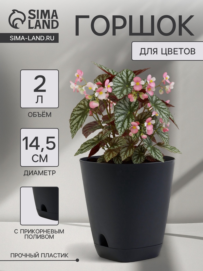 Горшок для цветов «Гранд», 2 л, d=14.5 см, h=15 см, пластиковый, с прикорневым поливом, графитовый