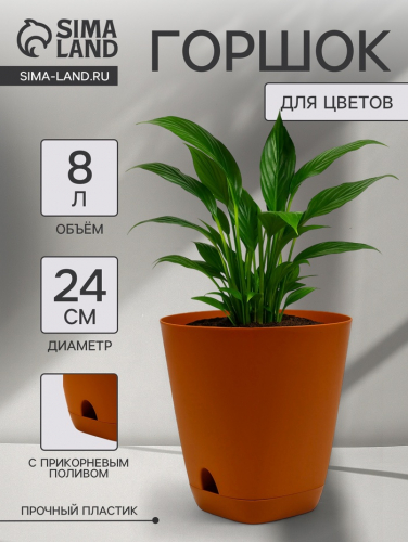 Горшок для цветов «Гранд», 8 л, d=24 см, h=25 см, пластиковый, с прикорневым поливом, коричневый