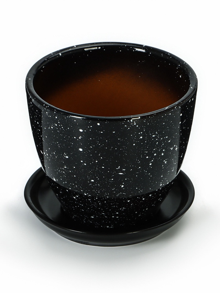 Горшок для цветов «Гранит », 1 л, d=15 см, h=13 см, керамика, с поддоном, чёрный