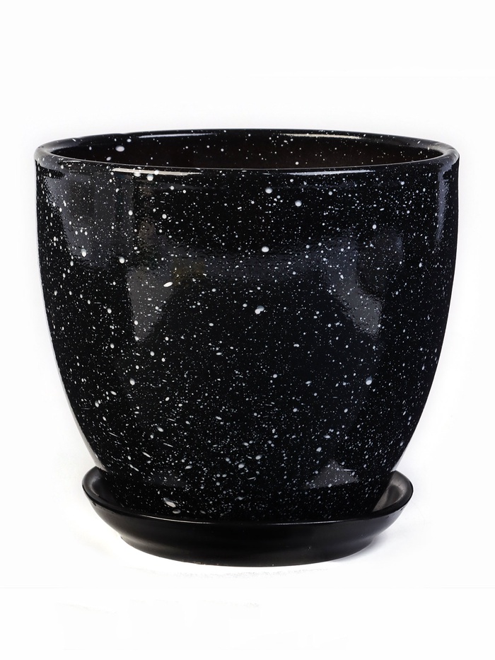 Горшок для цветов «Гранит», 2.5 л, d=19 см, h=18 см, керамика, с поддоном, чёрный