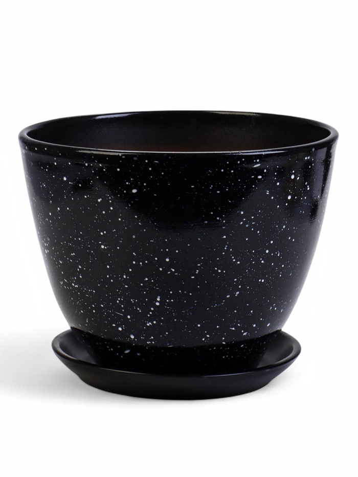Горшок для цветов «Гранит», 8 л, d=29.5 см, h=33 см, керамика, с поддоном, чёрный