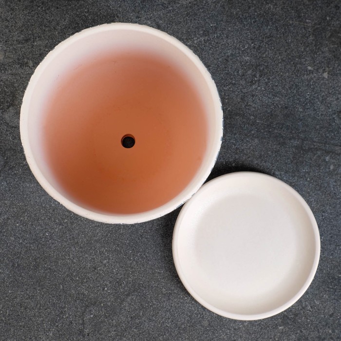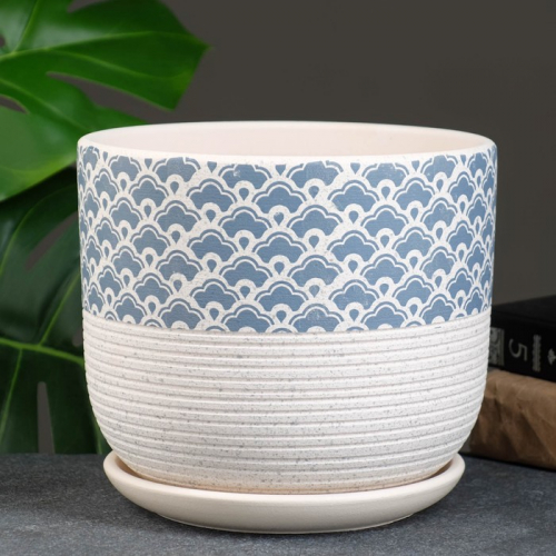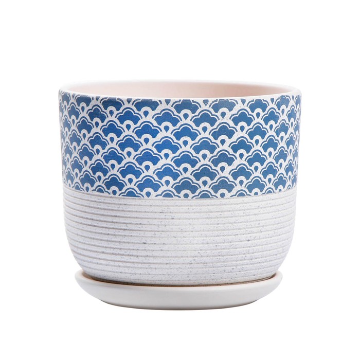 Горшок для цветов «Хоккайдо», керамический, с поддоном, 2.95 л, белый с голубым орнаментом