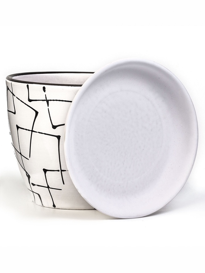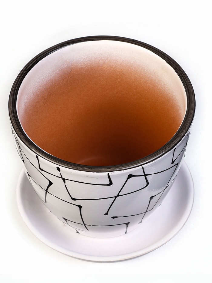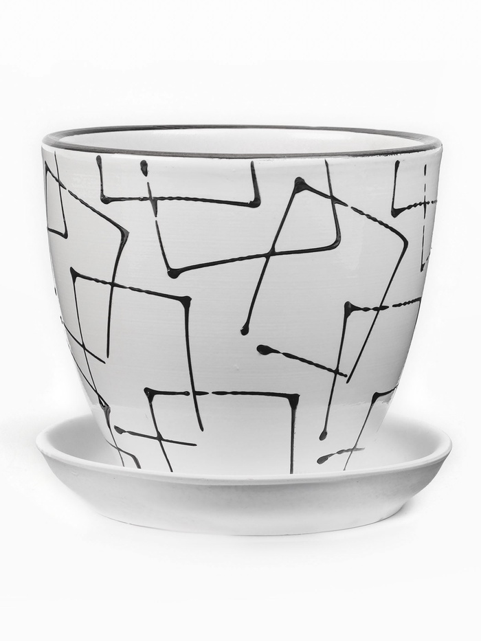 Горшок для цветов «Иллюзия», керамический, с поддоном, 1 л, белый с геометрическим орнаментом