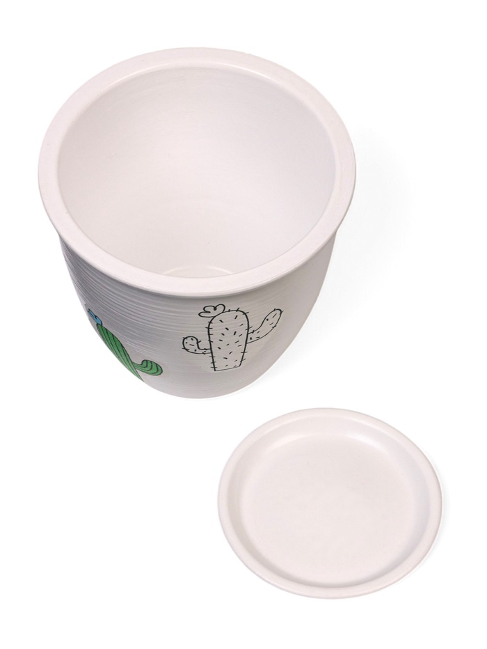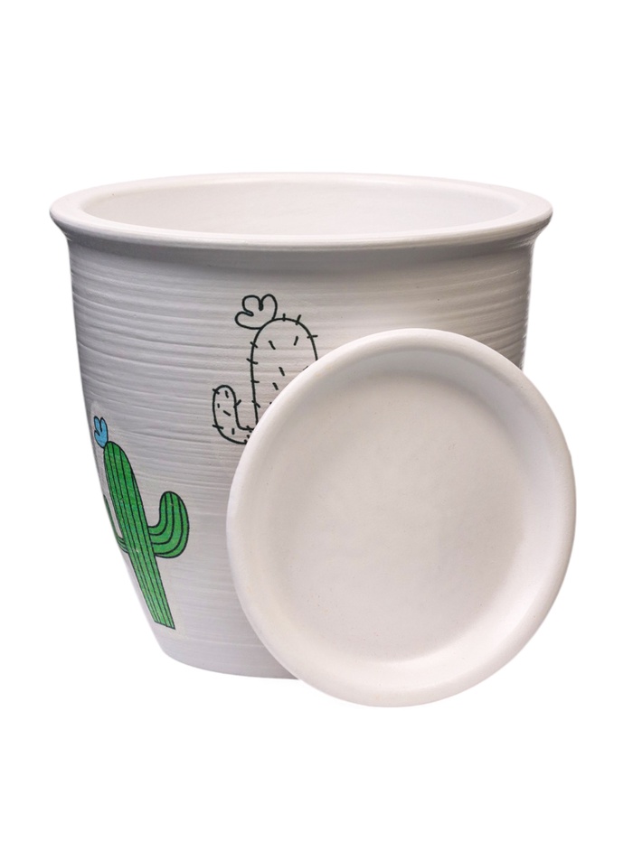 * Милый дизайн: белый цвет гарантирует, что горшок отлично подойдёт почти под любой стиль. А милый узор с кактусом выделит его на фоне других деталей интерьера.