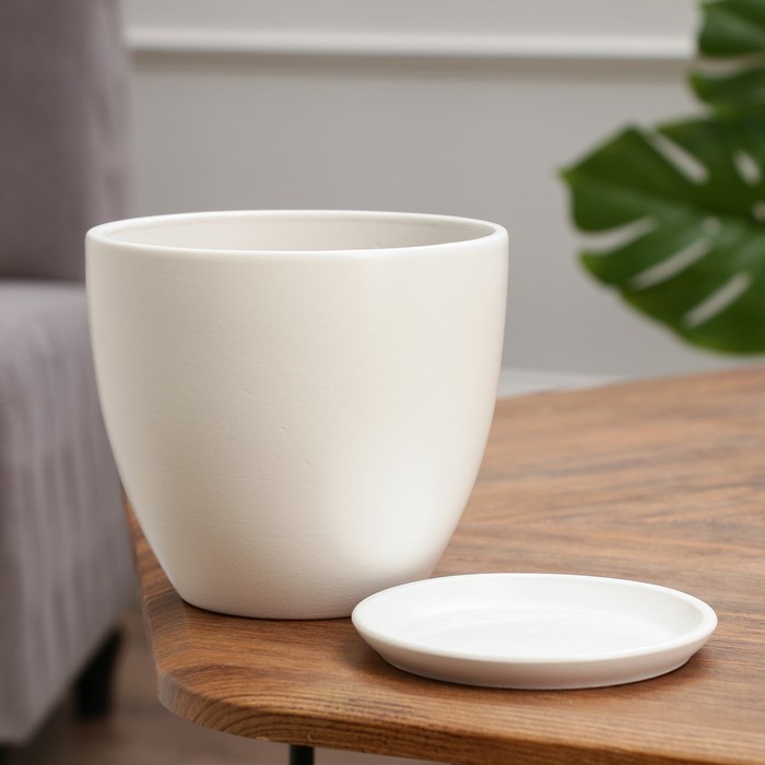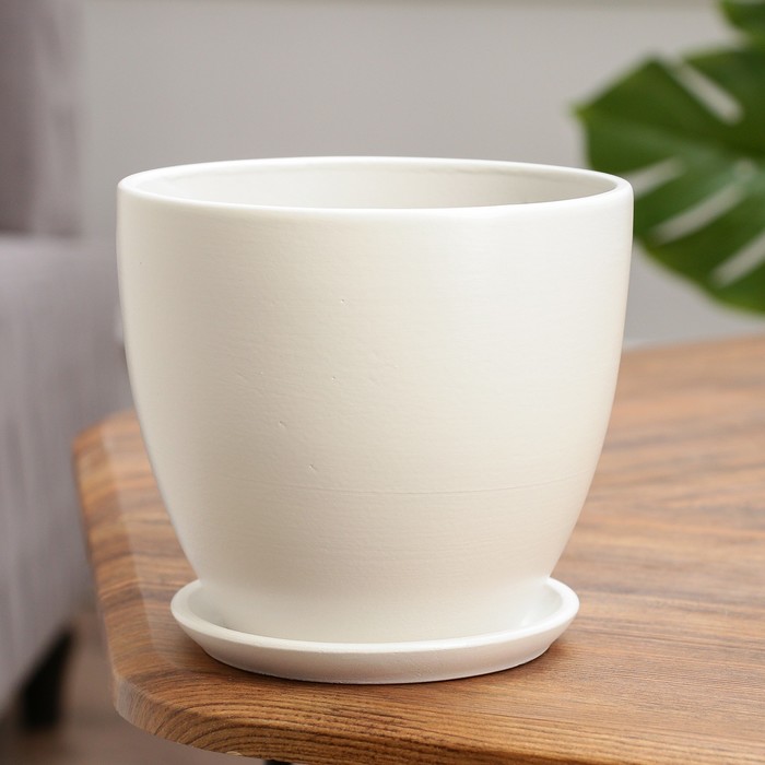 Горшок для цветов «Колор гейм», керамический, с поддоном, 1.4 л, белый