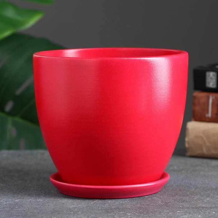 Горшок для цветов «Колор гейм», керамический, с поддоном, 1.4 л, красный