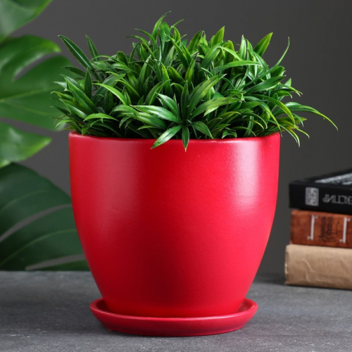 Элегантный цветочный горшок из керамики с поддоном в насыщенном красном цвете – это не просто функциональный предмет, но и эффектный декор для вашего дома. Идеально подходит для комнатных растений, добавляя цвет и стиль в любое помещение.