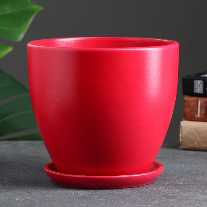 Горшок для цветов «Колор гейм», керамический, с поддоном, 2.5 л, красный