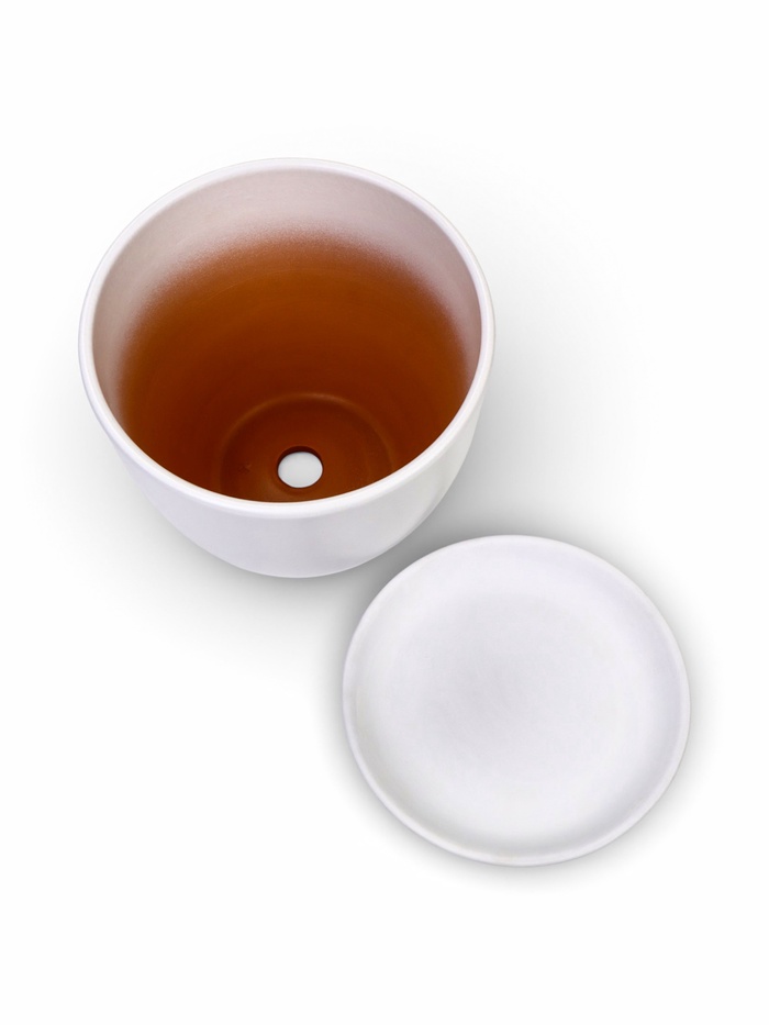 Белый керамический горшок с поддоном 5,9 л — это идеальное решение для вашего интерьера, создающее атмосферу эстетики и свежести.