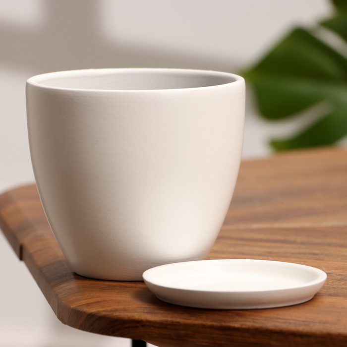 Горшок для цветов «Колор гейм», керамический, с поддоном, 800 мл, белый