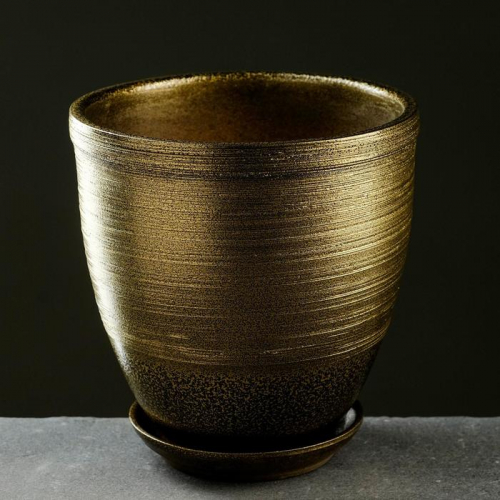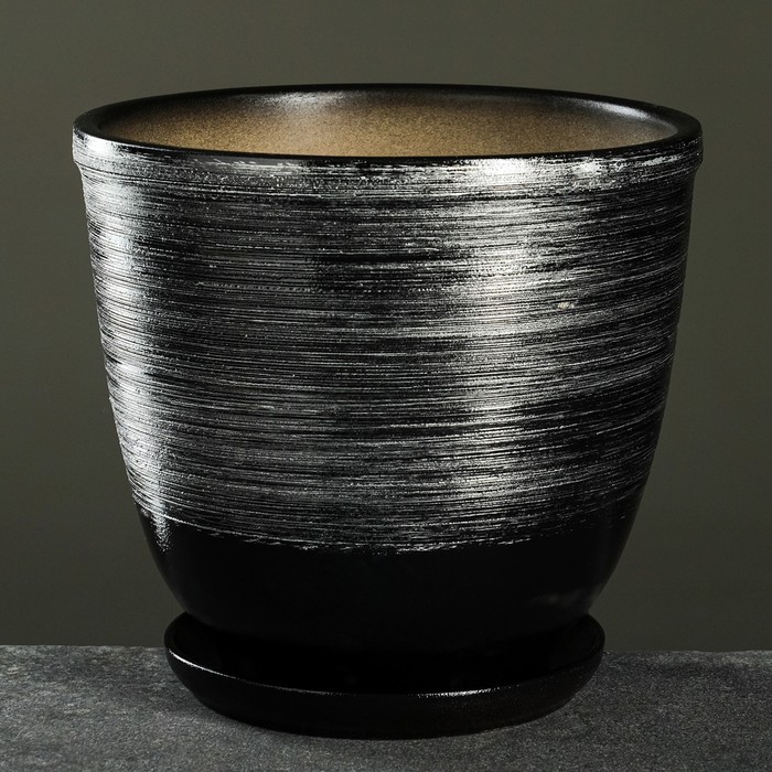 Горшок для цветов «Космос», керамический, с поддоном, 8 л, чёрный с серебряными полосками