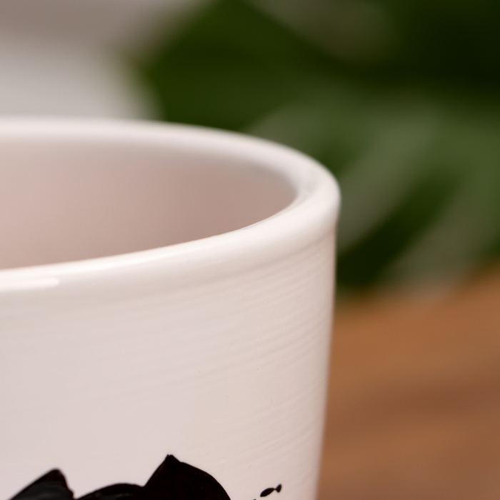 * Универсальный дизайн: белая керамика впишется в любой интерьер. Горшок с рисунком кота оживит помещение, придавая ему уют и оригинальность.