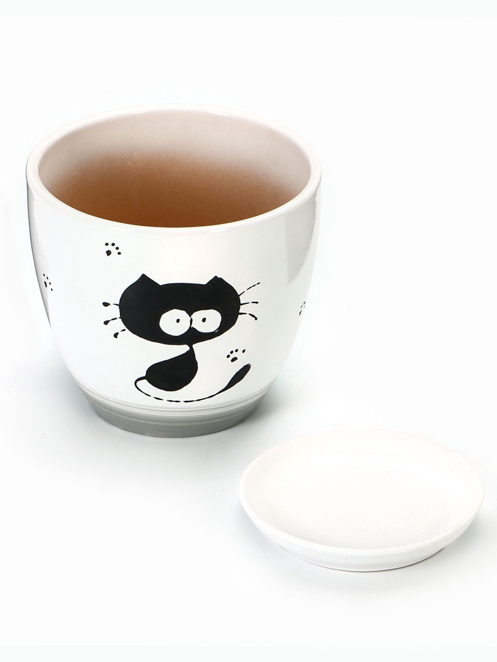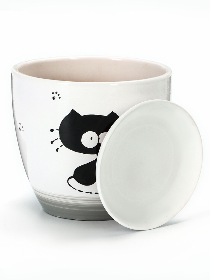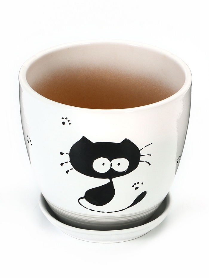 Горшок для цветов «Кот», 2.5 л, d=19 см, h=18 см, керамика, с поддоном, белый