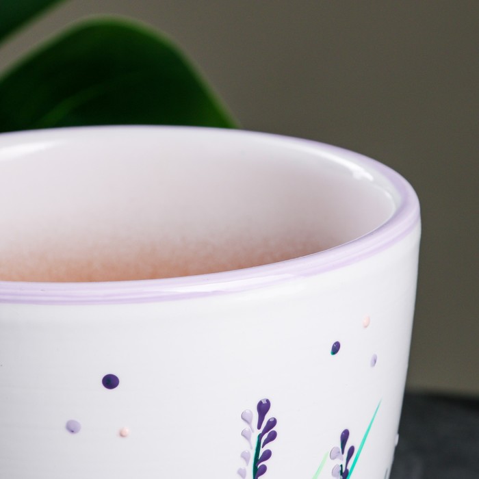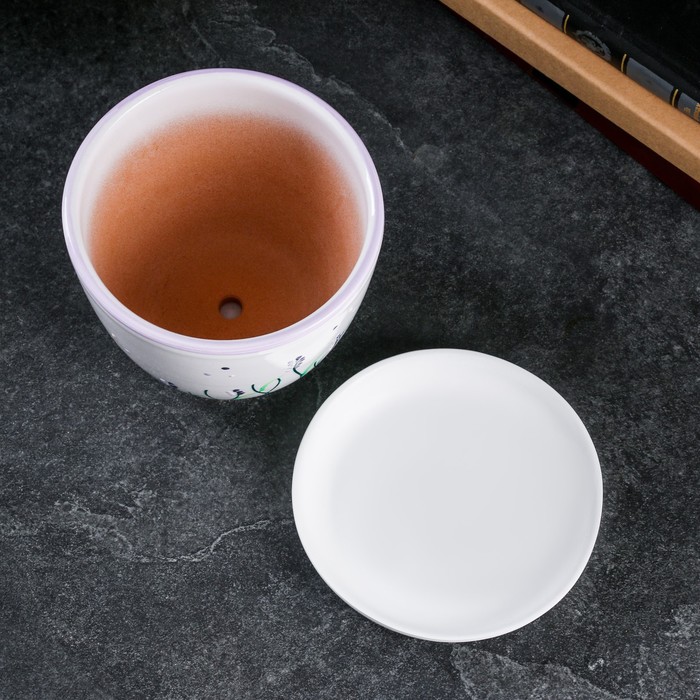 Горшок для цветов «Лаванда», керамический, с поддоном, 1 л, белый