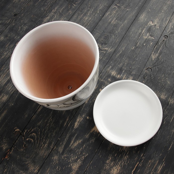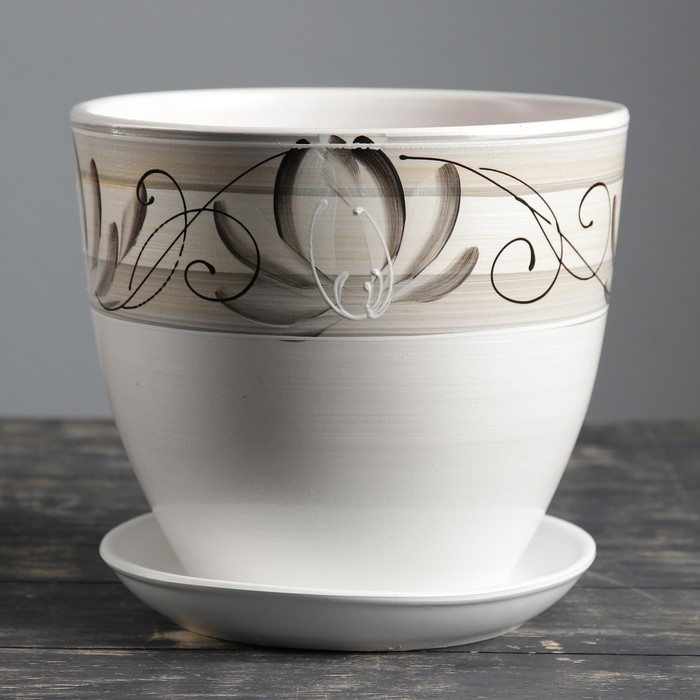 Горшок для цветов «Лотос», керамический, с поддоном, 5 л, белый с зелёными полосками