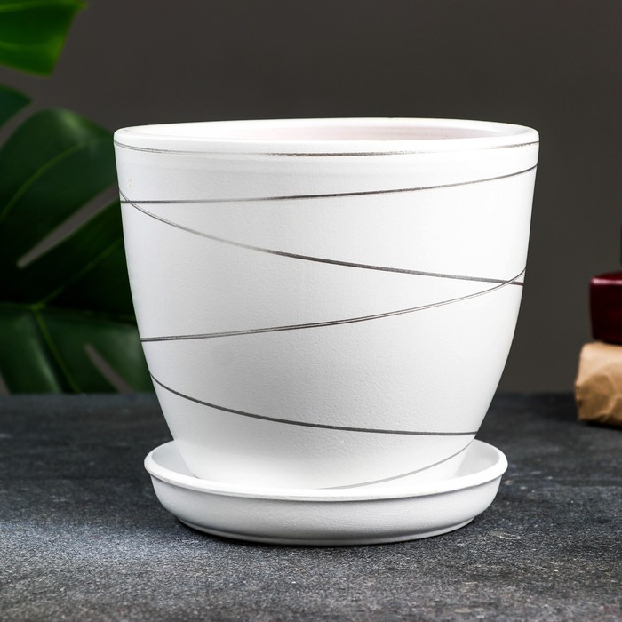 Горшок для цветов «Магнолия», 2.4 л, d=17 см, h=16 см, керамика, с поддоном, белый