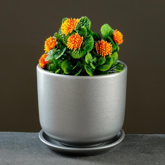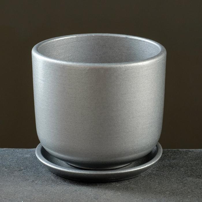 Горшок для цветов «Металлик №2», керамический, с поддоном, 850 мл, d=12 см, серый