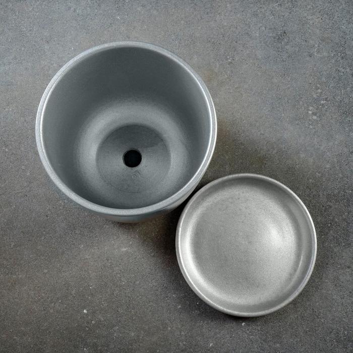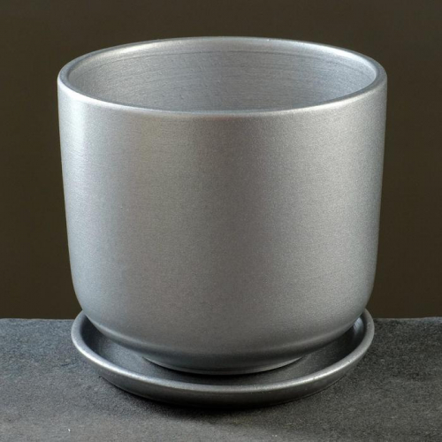 Горшок для цветов «Металлик №3», керамический, с поддоном, 1.6 л, d=15 см, серый