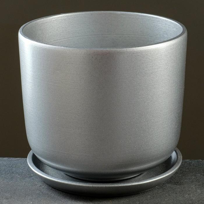 Горшок для цветов «Металлик №4», керамический, с поддоном, 3.1 л, d=18 см, серый