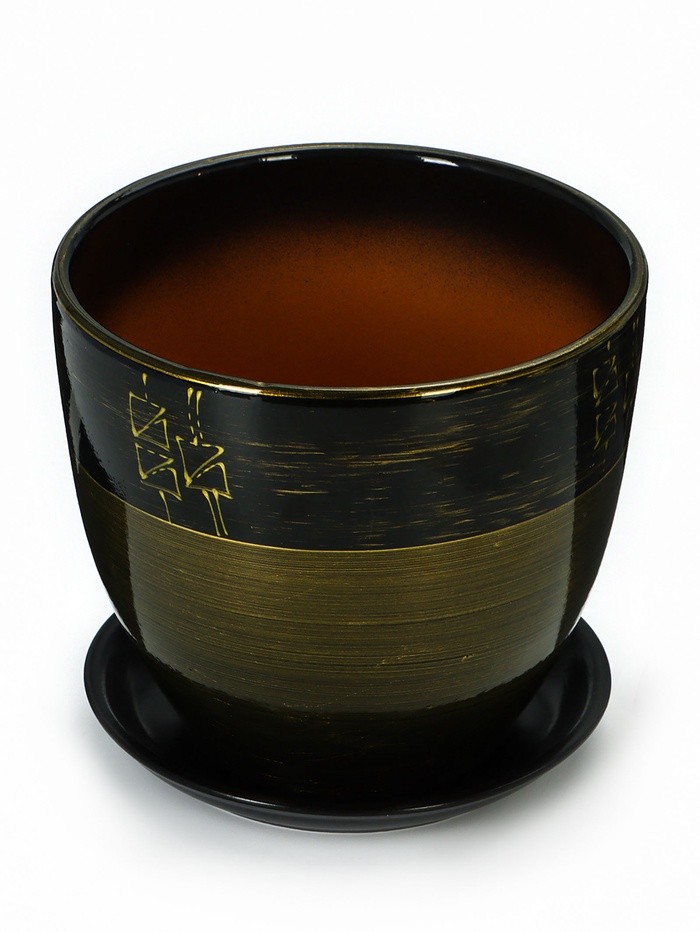 Горшок для цветов «Мираж», керамический, с поддоном, 5 л, коричневый с золотыми полосками