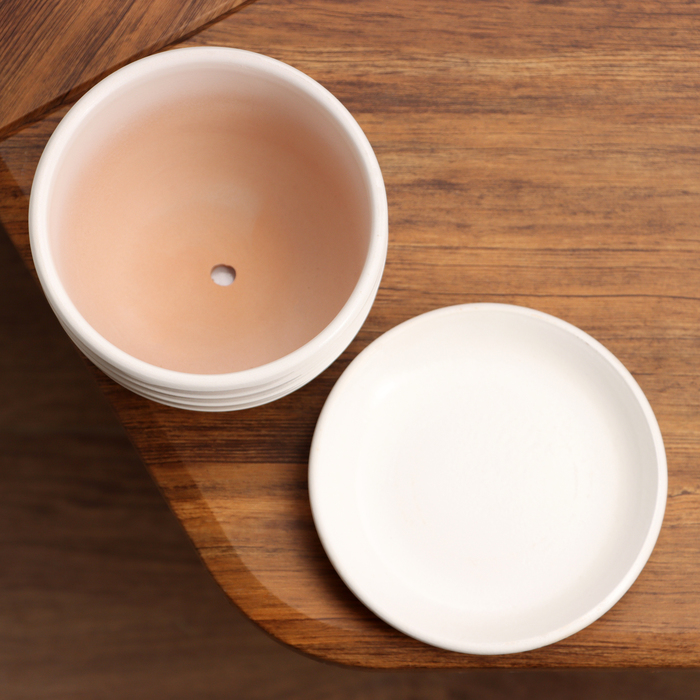 Горшок для цветов «Нежность», 500 мл, d=13 см, h=10 см, керамика, с поддоном, белый