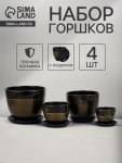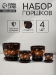 Горшок для цветов «Радуга №4», керамический, с поддоном, 2.6 л, коричневый с орнаментом