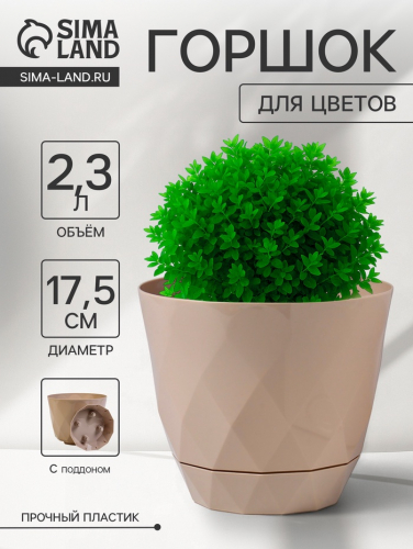 Горшок для цветов с поддоном Laurel, 2.3 л, d=17.5 см, h=15 см, пластиковый, бежевый