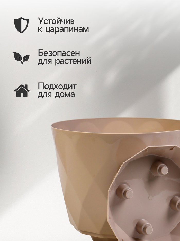 Горшок для цветов с поддоном Laurel, 9.3 л, d=27.7 см, h=22.5 см, пластиковый, бежевый