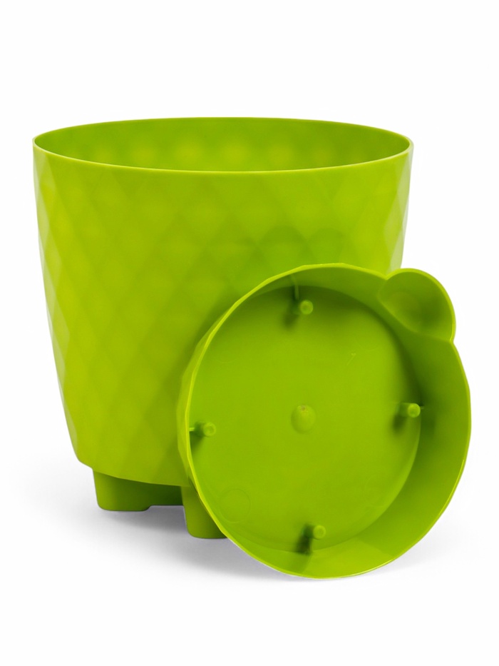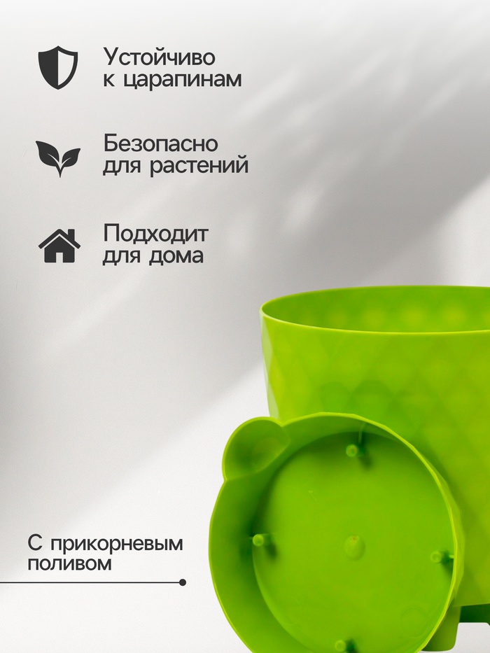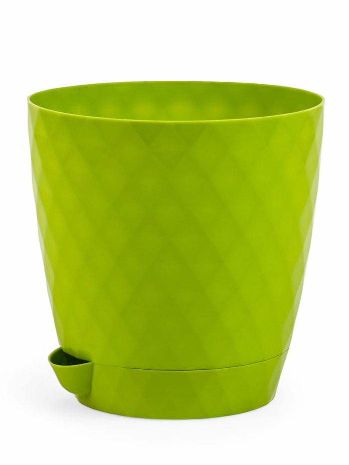 Горшок для цветов, с прикорневым поливом «Румба», 1.5 л, d=14 см, h=14.5 см, пластик, с поддоном, цвет киви