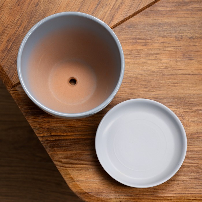 Керамический цветочный горшок «Серый» с поддоном подходит для настольной установки и станет отличным выбором для вашего дома или офиса.