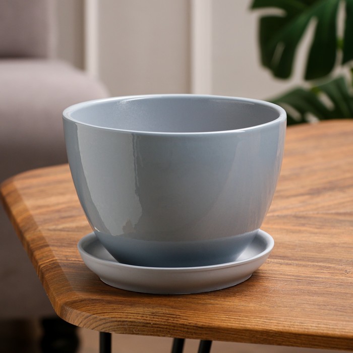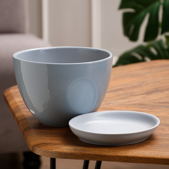 Горшок для цветов «Серый», керамический, с поддоном, 1.65 л, цвет МИКС